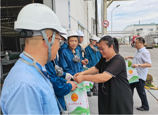 為應對高溫高濕天氣和新冠疫情常態化防控對安全生產帶來的影響和挑戰,維護職工安全健康權益,7月26日乳山市總工會“夏送清涼”活動走進威海佰德信新材料有限公司,乳山市經濟開發區經濟發展局周延斌局長及乳山市總工會的工作人員為公司一線員工送上毛巾、茶葉、水杯、礦泉水等“清涼禮包”,為大家帶來一份清涼愜意,也帶來了組織的關懷與慰問。
